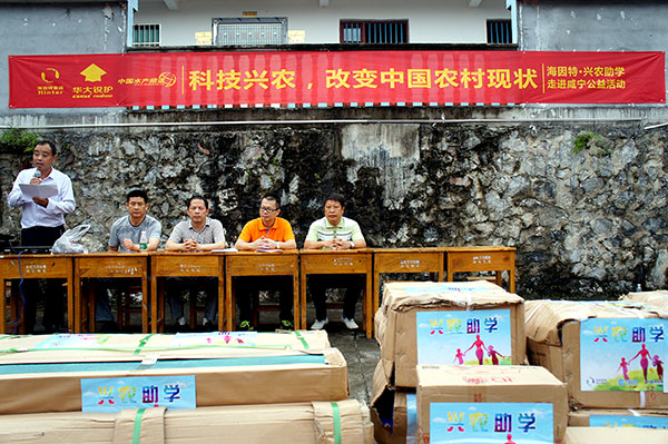“科技兴农,改变中国农村现状”一直是海大集团的企业使命。继首站为四川省成都市都江堰邛崃市大同学校的57名留守儿童、特困生送上礼物和爱心活动后,2016年6月20日,海因特团队联合华大锐护和《水产前沿》杂志、中国水产频道等同行,来到了湖北省咸宁市崇阳县路口镇高田小学。
