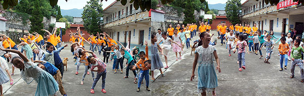 在校学生与海因特团队一起载歌载舞