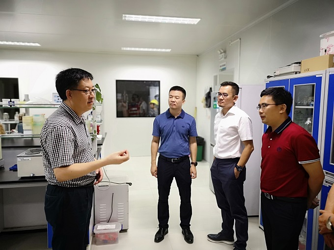 来访领导一行首先参观了海大研究院,对研究院各个实验室及检测中心进行深入了解,研究院副院长王贵平详细介绍了海大集团的研发投入、研发团队、研发成果及获得的荣誉。在了解到海大有这么多的博士人才,以及博士后工作站、院士工作站后,李副市长为研究院强大的研究团队点赞。同时,来访领导对海大的检测中心CNAS认证强大检测实力非常认同,在参观实验室的过程中,对海大独立研发的水体有害菌快速定量检测盒等各类先进的检测产品赞不绝口。