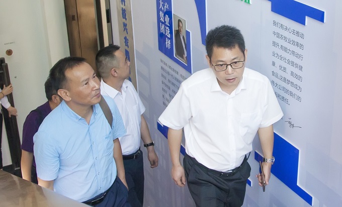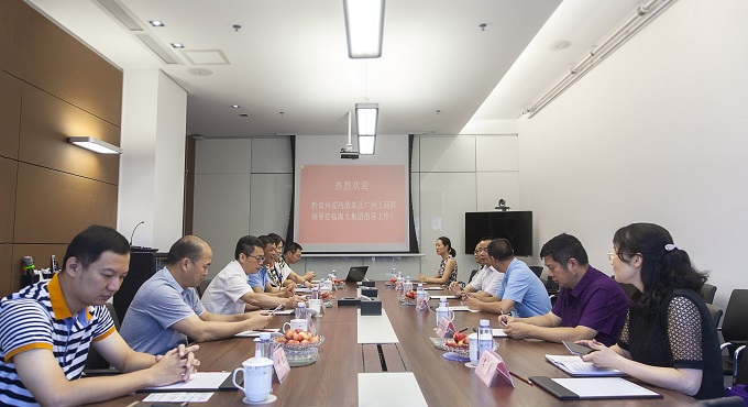 7月10日,中共黔南州委统战部常务副部长陈良海同州工商联主席邵其岷、州委统战部副部长吉永忠等一行领导在广州市工商联党组副书记尹宏亮等成员陪同下莅临海大集团参观考察,在荣誉墙前驻足良久,对海大取得的成绩赞不绝口,集团副总裁陈明忠、助理副总裁柴琰、总裁办副主任孙明华与到访领导进行了交流。