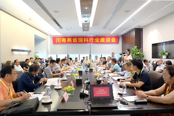 在座谈会上,广东省饲料行业协会会长林海丹介绍了川粤两省出席会议的领导和企业家,集团副总裁陈明忠对大家的到来表示欢迎和感谢,并介绍了海大集团的发展情况和未来产业规划;采购总监杨建涛分享了海大三级采购体系建设情况,分析了中美贸易战对饲料行业的影响,并提出了应对措施;营销中心副总监刘栋辉介绍了海大集团营销管理及人才激励等情况;研究院副院长卞国志介绍了海大研究院研发投入和研发队伍建设情况。