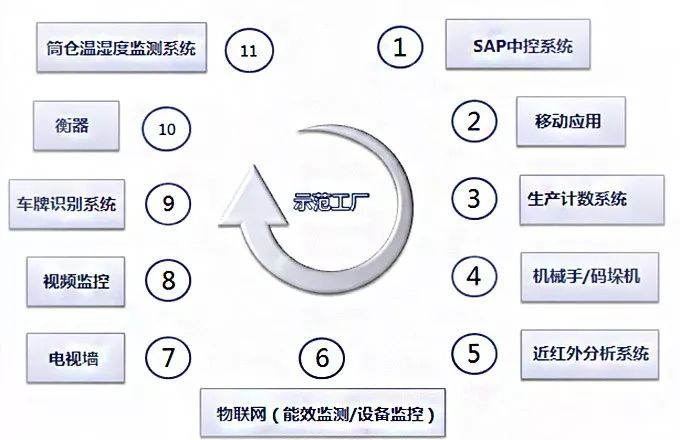 智能化示范工厂位于清远市清城区石角镇广清产业园,自2016年1月开工,一期工程历经19个月完成基础建设、生产设备安装调试,并于2017年9月建成投产,截止2018年3月已经完成基础设施、生产设备、信息化三大板块建设。其中,生产车间建立了SAP及中控系统集成、移动互联平台应、机械手、iMES系统、筒仓温湿度监测系统等多个新型智能化应用系统。