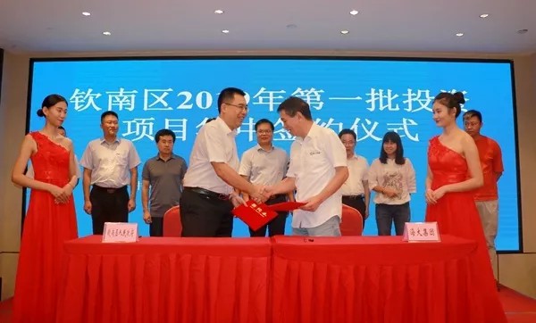 广西钦州市钦南区举行2019年第一批投资项目集中签约仪式,海大集团与区城府现场为广西海大二期年产30万吨饲料项目签约。项目选址钦南区金窝工业园,占地40亩,项目总投资金额1.5亿元,项目建成达产后,年实际生产能力达25万吨,年总产值预计达10亿元;