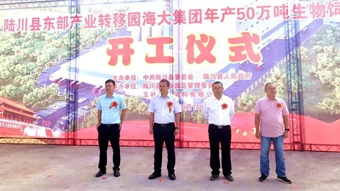 陆川县委、县政府、人大、政协四套班子领导及法院、检察院、园区、珊罗镇等相关单位领导出席了重大项目开工仪式。会上,海大集团华南大区副总裁田大斌代表集团进行致辞,田总指出,玉林海大年产50万吨饲料项目是集团在广西区域的重大建设项目,是产业链在广西布局的重大举措。该项目现已完成土地招拍挂、备案及环评等前期手续,正在积极推动解决土地平整工作,全面启动项目建设,争取早日建成投产。