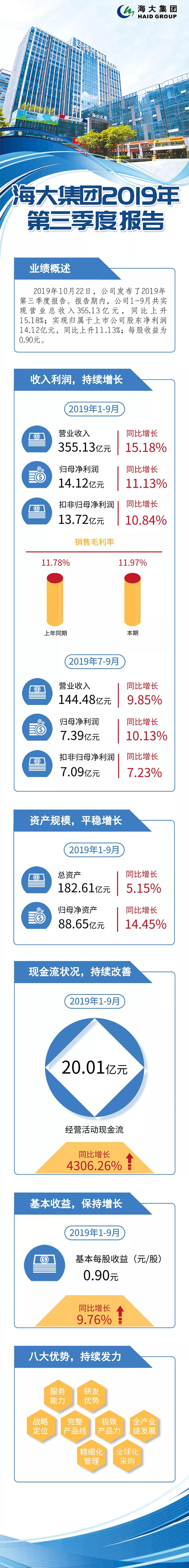 海大集团2019年前三季度营收355.13亿元,同比增长15.18%