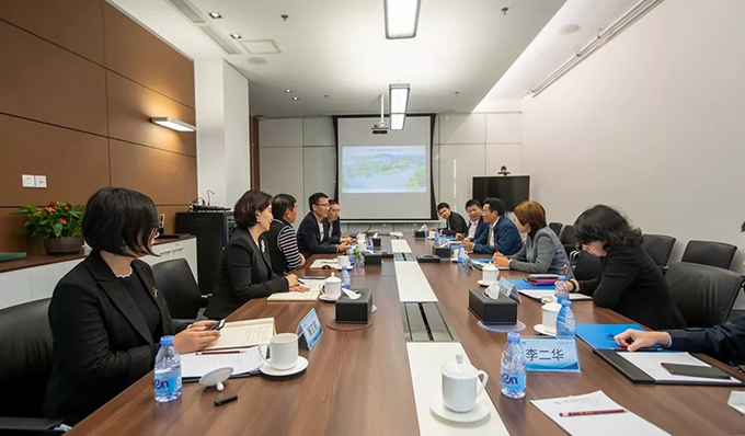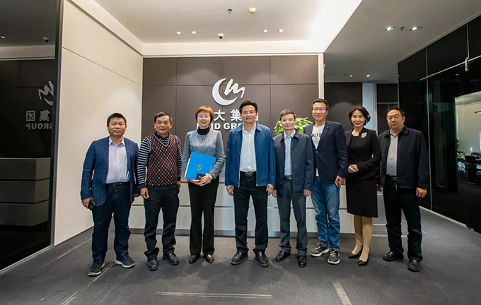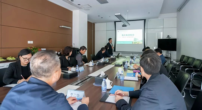 海大集团副总裁陈明忠(左二)副总裁米国成(左三)、助理副总裁柴琰(左一)
