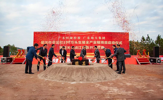 2020年1月3日,由广东恒健投资控股有限公司(以下简称恒健控股)、广东海大集团股份有限公司(以下简称海大集团)共同发起的韶关市年出栏100万头生猪全产业链项目启动暨浈江益豚奠基仪式在韶关市浈江区隆重举行。项目总投资30亿元,建成后将包含生态智慧养殖、饲料加工、生猪屠宰、冷链运输等养殖全产业链。广东省农业农村厅厅长顾幸伟等领导出席活动。恒健控股董事长温文星、海大集团董事长薛华出席现场并参加奠基仪式。