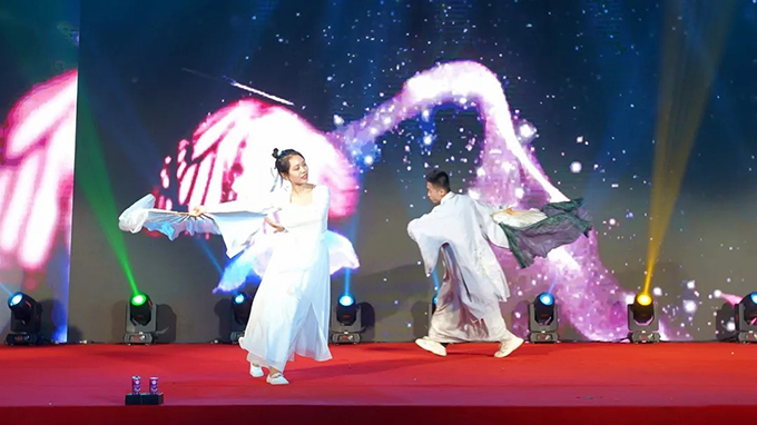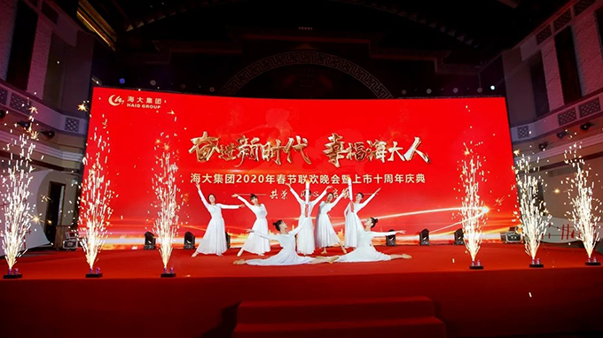 辉照华庭开伟业,龙吟神州展宏图。晚会前,随着《2019年大事记》视频的播放,全场共同回顾了过去一年中,海大取得的一项项新荣誉、创下的一个个新成果,这是属于全体海大人的荣光。一段刚柔并济、轻盈灵动的开场舞蹈《扬帆起航》揭开了晚会的序幕:从一叶轻舟壮大为如今的行业巨轮,海大集团无畏险阻、无悔风雨,一路披荆斩棘、高歌猛进。舞蹈演员现场“点燃”火炬,台上烟火璀璨,寓意着海大人将燃烧激情、踏浪而行,共筑海大辉煌、做幸福海大人。
