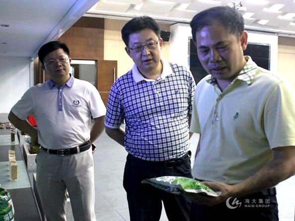 6月26日,广东省农业厅处长刘付启荣、副处长张永发等人莅临海大集团参观考察,集团研究院副院长王贵平热情地接待了来访领导。