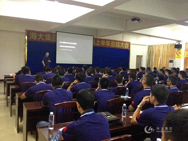 会上,米总总结了2014年上半年取得的成绩与不足,对下半年的工作进行了梳理和安排。同时,米总结合海大文化、公司战略和华南三区管理的实际情况,以《我的理念与我的价值观》为主题报告,重申“抓质量、保供应、控成本”、“说真话、干事实、要和谐”的管理理念,带领大家深入理解海大文化,并描绘了华南三区发展蓝图目标,进一步加强统一营销团队的思想。