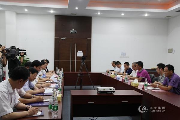7月22日下午,安徽省池州市委书记陈强率团莅临海大集团参观考察,集团副总裁陈明忠、投资发展中心总监李永强、安徽海大副总经理胡启超热情接待了客人。