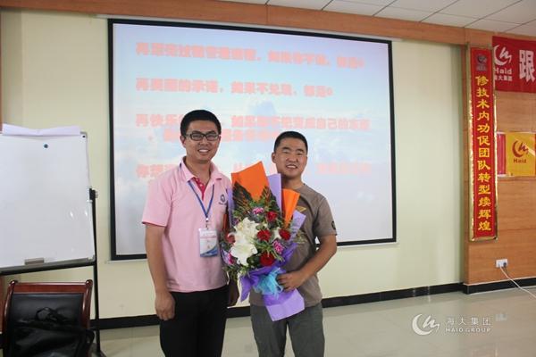 华中MDP培训班上,学员代表为吕总(右二)献花