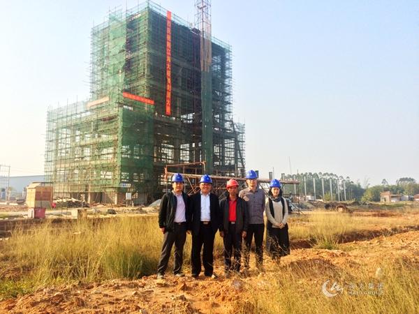 阳江海大坐落于阳江市高新区福冈工业园,一期工程于2014年8月1日正式开工,时间短任务重,历经5个多月,办公楼已完成封顶,原料仓、成品仓也进入到吊装梁柱的施工阶段。