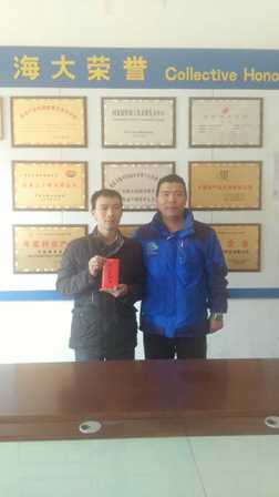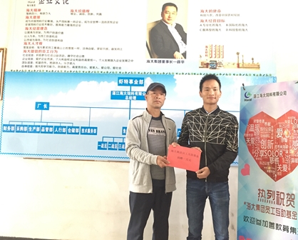 湛江海大一部厂长贾永强代表集团为家属重疾员工王海宁颁发互助金爱心款1万元