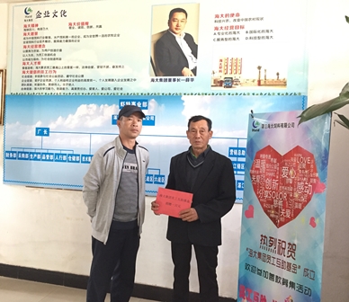 江西海大副总经理柴国周代表集团为家属重疾员工聂永锋颁发互助金爱心款5千元