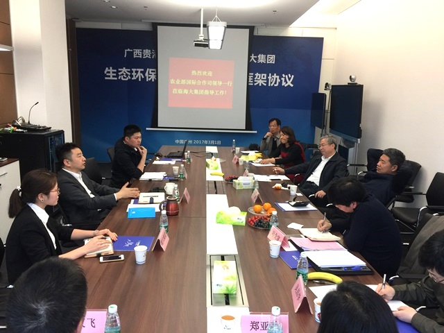 2017年3月2日,农业部国际合作司副司长张陆彪一行在广东省农业厅副巡视员陈正辉等同志的陪同下来访海大集团,调研农业“走出去”等相关情况。集团董事长薛华等热情接待了客人,并出席座谈会。