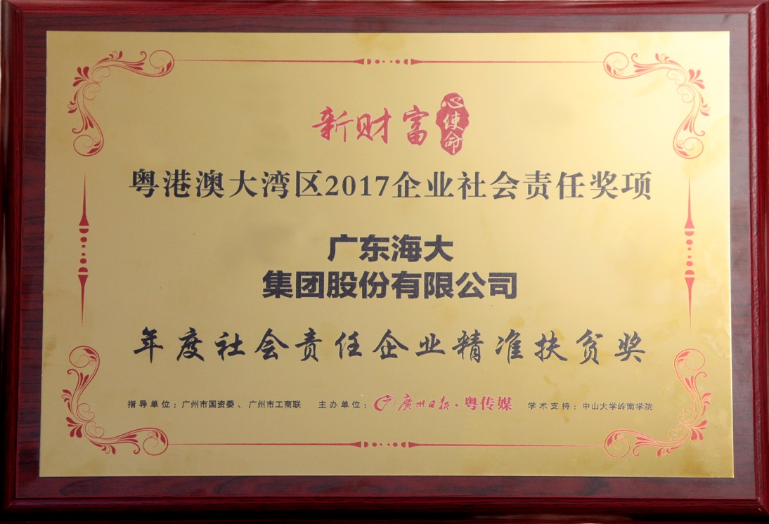 海大集团荣膺“2017年社会责任精准扶贫奖”