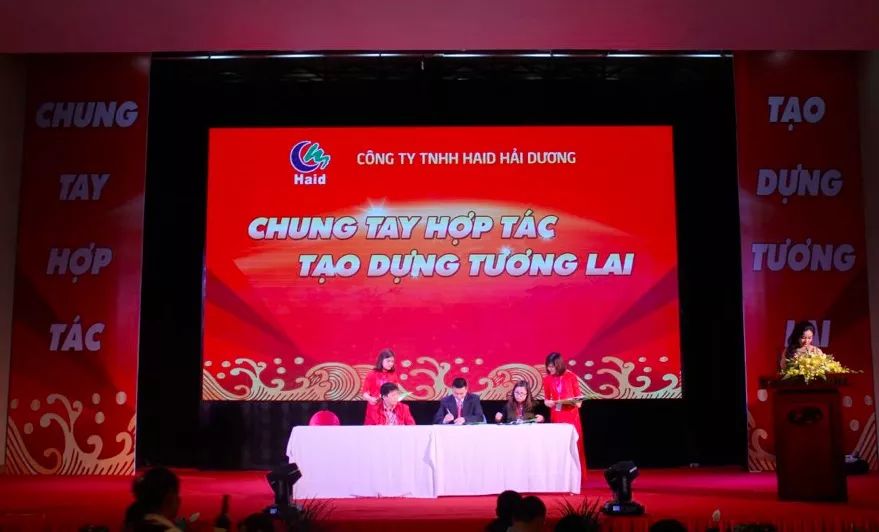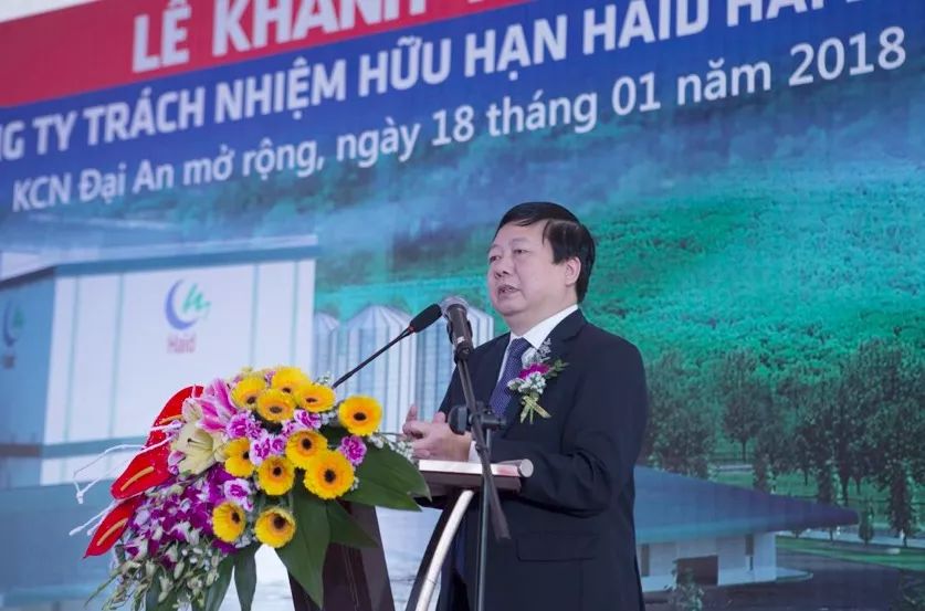 上午10:08,海阳省人民委员会主席阮阳泰登台郑重宣布:海阳海大有限责任公司开业庆典开幕!并代表省委,省政府向海大集团选择在越南海阳投资表示欢迎,对海阳海大公司快速建成投产表示热烈祝贺,同时承诺,海阳省各政府职能部门将为海阳海大有限责任公司的建设、生产、经营提供良好的发展环境。