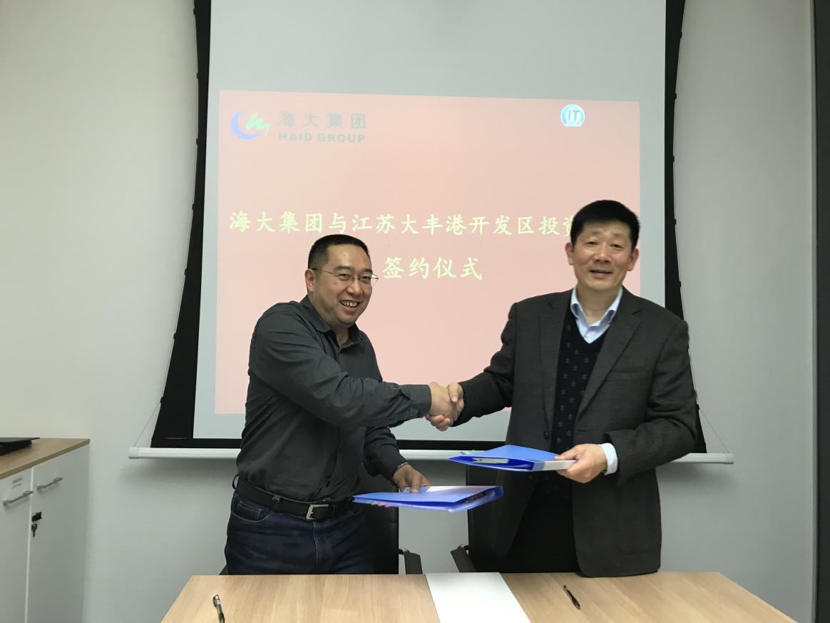 3月6日,江苏省盐城市大丰港经济开发区管理委员会副主任袁宏 、盐城市大丰区人民政府境外招商二局科长唐春银一行到访海大集团总部进行考察,并签定年产24万吨生物饲料生产项目投资协议,项目用地60亩,建成达产后可实现产值6亿元。