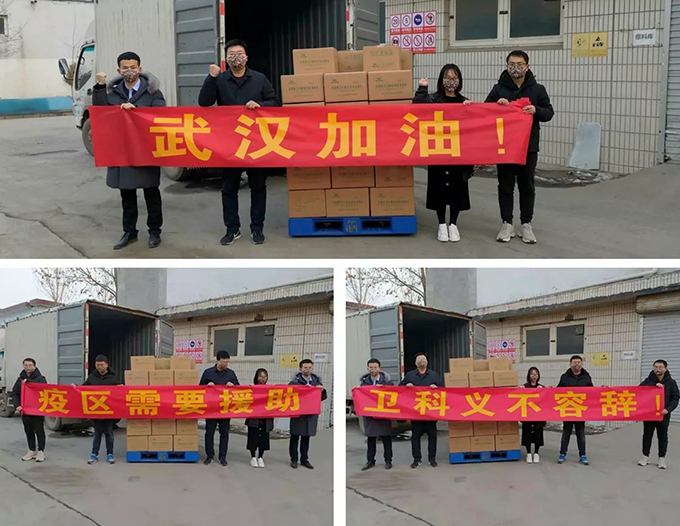 为了支援疫区、做好全国各地疫情防控,卫科生物通过湖北武汉红十字会,捐赠给湖北武汉及周边疫区50箱环境消毒泡腾片;相关单位向卫科生物采购调拨20吨二氧化氯消毒片剂,连夜装车,火速发往疫区,为新型冠状病毒肺炎疫情防控工作提供了有力的支持和帮助;同时,在得知石家庄市主要治疗医院消毒物资缺乏后,向石家庄五院紧急捐赠10箱二氧化氯消毒泡腾片,用实际行动为石家庄战斗在一线的医疗机构提供支援;此外,卫科生物还向华中农大医院、晋州市政府、石家庄高新区政府等机构捐赠了一些急需的消毒产品,希望通过公司的绵薄之力为全国抗疫战做出一份贡献。
