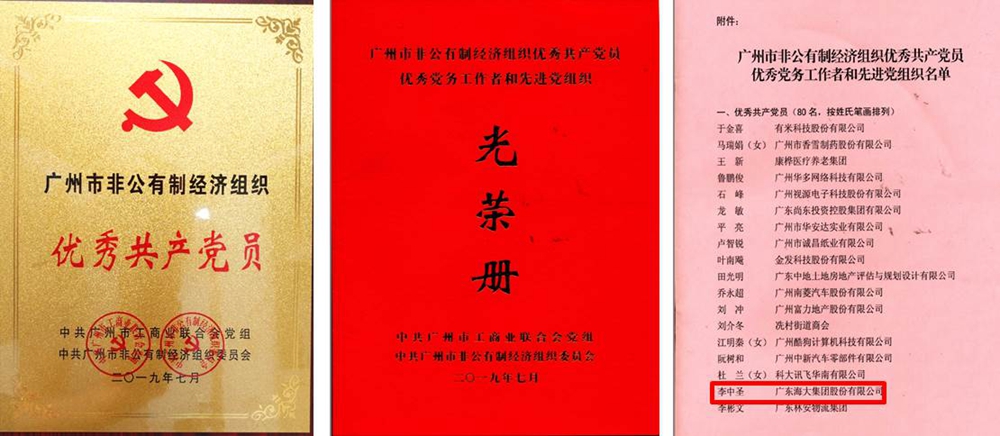 2019年7月3日,广州市非公有制经济组织庆祝建党98周年暨表彰大会在立白中心举行,广州市统战部常务副部长、广州市工商联党组书记董延军,广州市工商联副主席陈立、市工商联副主席余剑春,市非公党委书记熊鹰和广州市委组织部副处长李庄等领导出席。海大集团研究院 动物医学研究所 研发专家李中圣博士荣获“广州市非公有制经济组织优秀党员”称号。