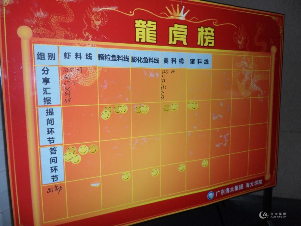 本次培训,禽料线小组成员通过前期的精心准备、过程中的灵活应答,获得了评委导师及学员的一致好评,最终以绝对的优势获得了本次“龙虎榜”的霸主地位。海大学院副院长丁振红先生为禽料组导师及学员颁发了2000元现金支票。