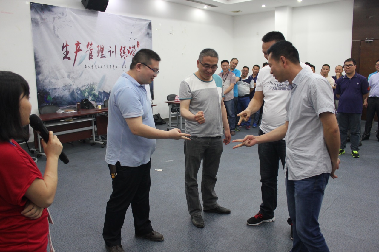 “恭喜您,答对了!”还不时传来加油声和鼓掌声……原来是第四期生产管理训练营在4月25日以知识竞赛的形式在集团会议中心开营了。这是一场精心设计的别有趣味的开营活动。来自各饲料公司的生产主管分成四组,在海大学院与工厂运营中心联合组织下,开启了一场斗智斗勇的知识竞赛,以欢乐游戏设置竞赛规则,旨在回顾上次培训内容,专业知识与欢乐游戏的完美结合,赋予生产管理训练营的开营仪式独特的魅力。